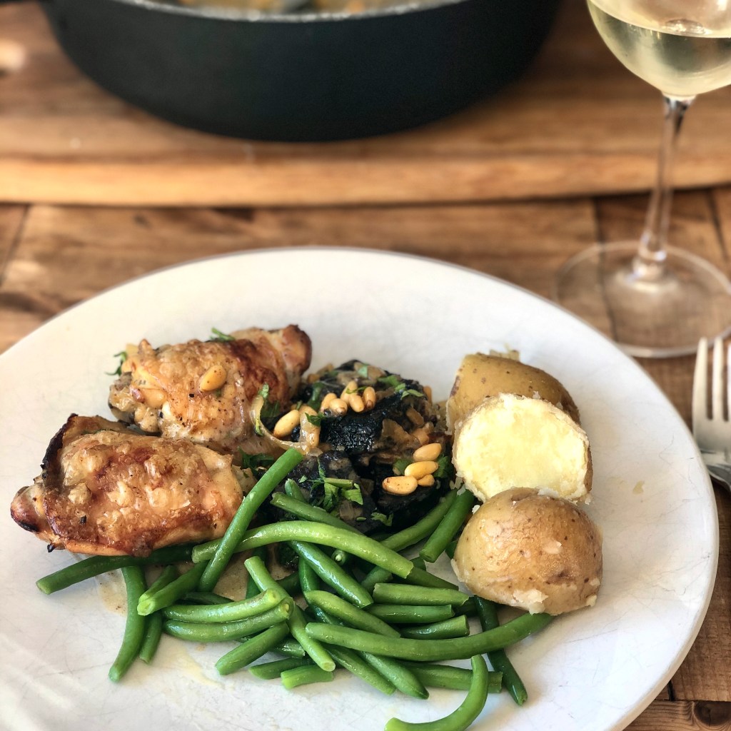 I’ve made more food from Diana Henry’s amazeballs A Bird in The Hand cookbook than possibly any other recipe book I own – I’ve also bought copies for numerous friends and they all love it too. Black pudding might not be for everyone, but my family love it and we return to this dish time and time again. Easily scale up or downable, just add more or less of the bits you like, but you’ll need 2 thighs per person.