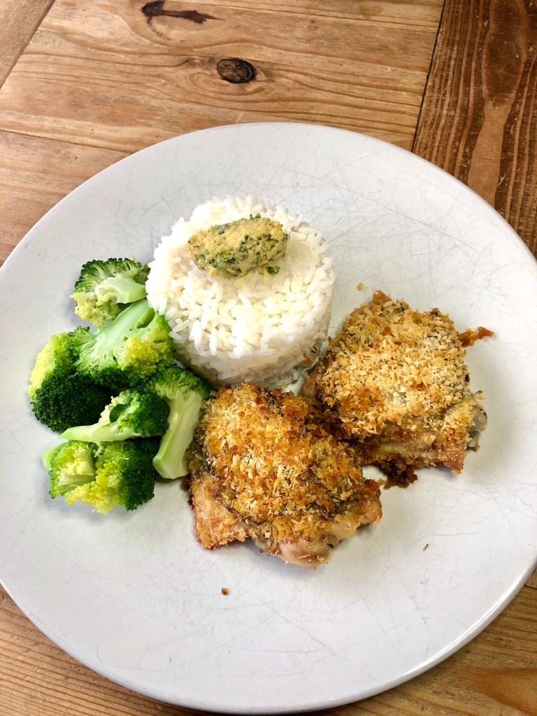 - Just before the chicken comes out of the oven, heat the remaining buttery mix gently in a small pan ready to serve over whatever greenery & carbs you’re having.