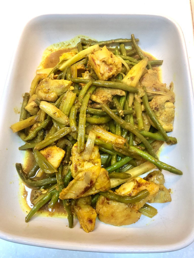 - Return all of the chicken to the pan along with the celery and beans, cook for a further minute or two.