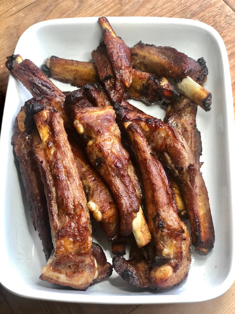 I’ve got new rules (but I’m not counting ’em): Always make more ribs than you think you’ll need, and don’t forget napkins for sticky fingers. Ten minutes to marinade, and an hour in the oven – this is straightforward to make, in fact it’s almost as easy as getting a takeout. Three of us managed to work our way through this lot: