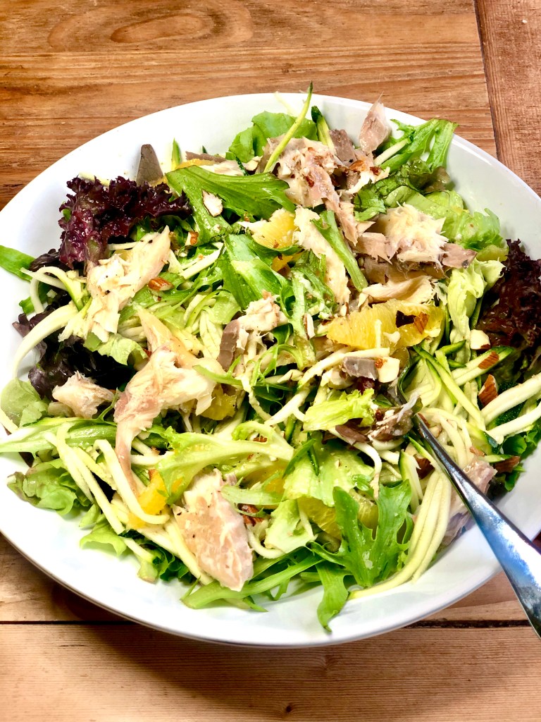 I’d forgotten all about this salad, then remembered it when standing staring inside the fridge looking for something for lunch and spotted some mackerel and half an orange – eureka! Consequently I’ve eaten it twice this week. Yums. I’ve even managed to get my salad hating teenager to admit that its ‘ok’. High praise indeed.