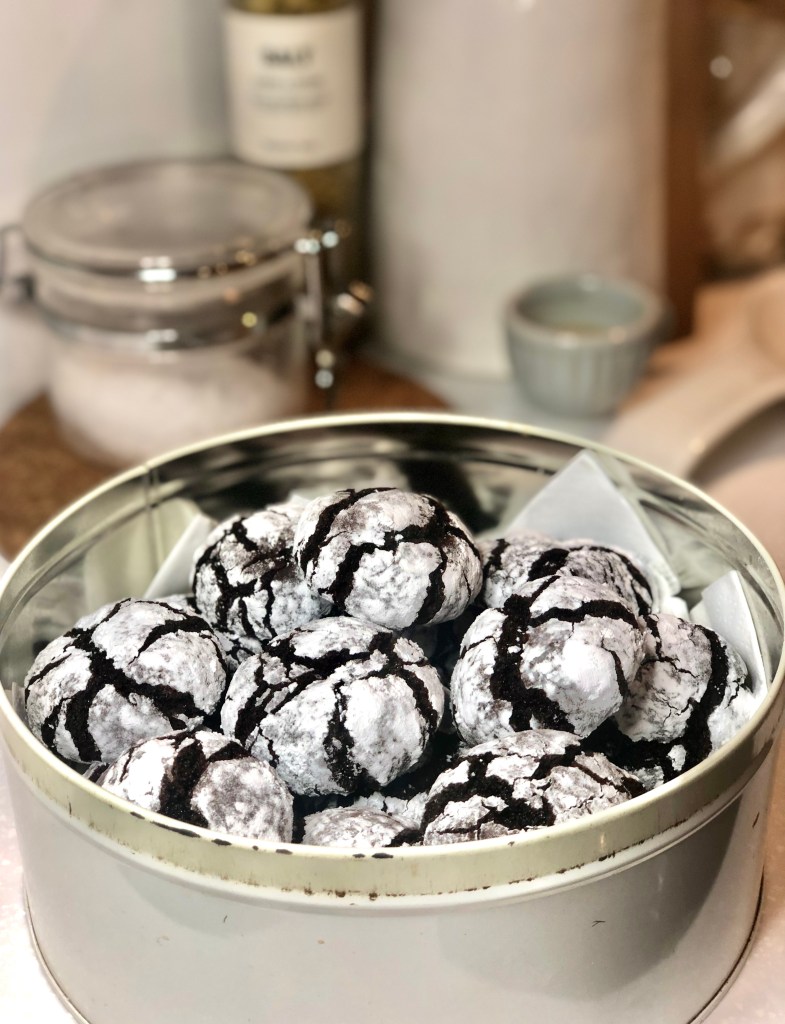 - Scoop out a heaped teaspoon of the cookie dough, roll into a ball, then roll in the icing sugar until coated. Place on a baking tray.