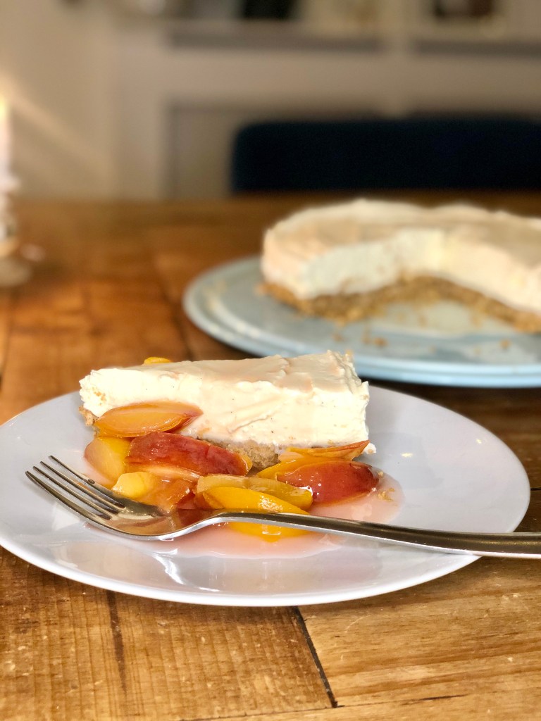 All the credit goes to BBC Good Food, however my daughter took one bite of this cheesecake and said “Mummy, you’re a genius” so I’m going to pretend that I made it up (at least when she’s around). Stewed plums are entirely optional, but I feel that some kind of fruit is necessary to try and compensate for the sheer decadence of the cheesecake. It’s really, REALLY, yummy.
