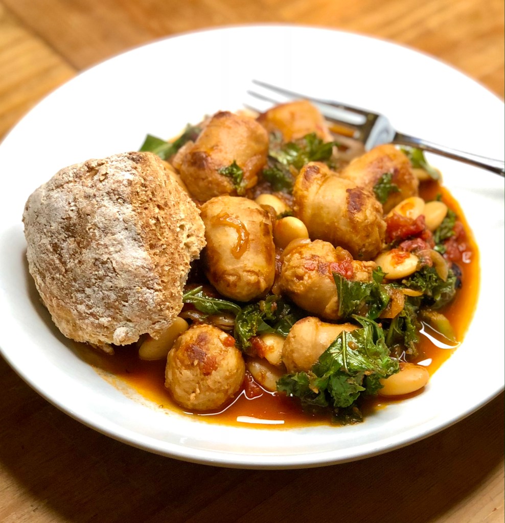 AKA autumn in a bowl. Yesterday the weather was awful – dark skies, endless rain, blustery winds – so after the wettest dog walk ever we ate this for dinner and all felt a lot better. If that wasn’t enough, my daughter ate the kale without question. SHE ATE KALE!!! Massive tick on the parenting ticky boxy list there. Serves 3.