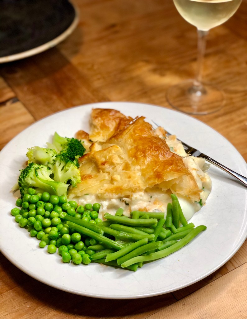 Oh I love this pie. It takes a little while to make, but it’s well worth the effort. I know a pastry fish pie can be divisive, so if you’re more of a mash type, then just go ahead with the filling and tuck it in under a mash duvet. It’s all good however you make it. This is the pie that our old friends Jim & Tarsh requested as a final supper before they emigrated to New Zealand many years ago and so consequently I think of them every time I make it now. One day I’ll get to make it for them again! Serves 4.