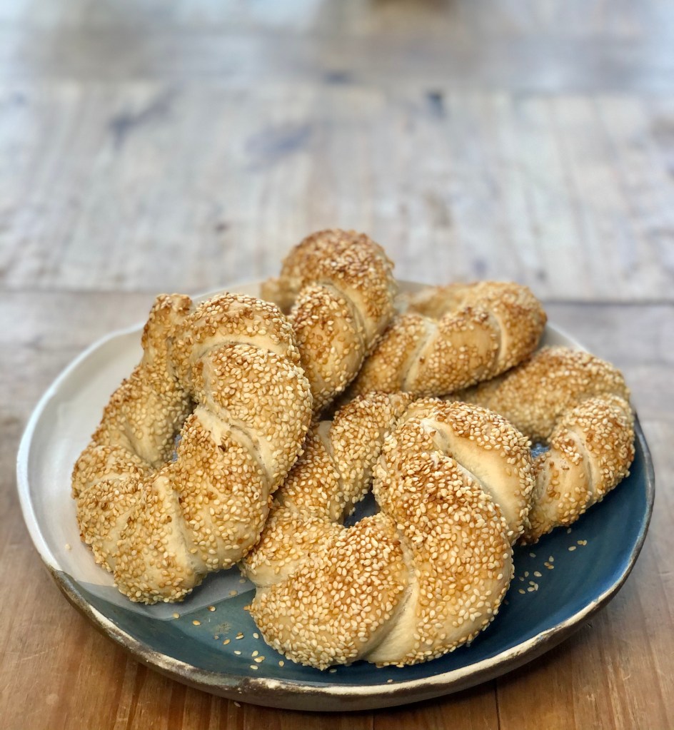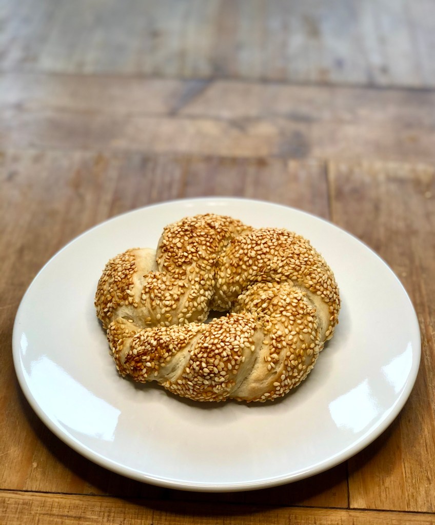 How do you keep 3 small children entertained when traipsing around Istanbul catching up with friends (and when those 3 small children don’t speak Turkish)? Well, according to my parents c1980 you give them some simit and they’ll be happy. Available absolutely everywhere from street stalls and sellers that wander about touting their wares, these sesame circular breads are a staple for breakfast and lunch, and are like a time machine for me – suddenly I’m 7 years old. This recipe makes 8.