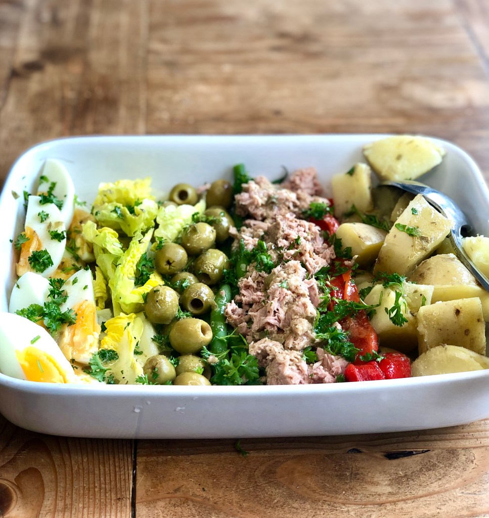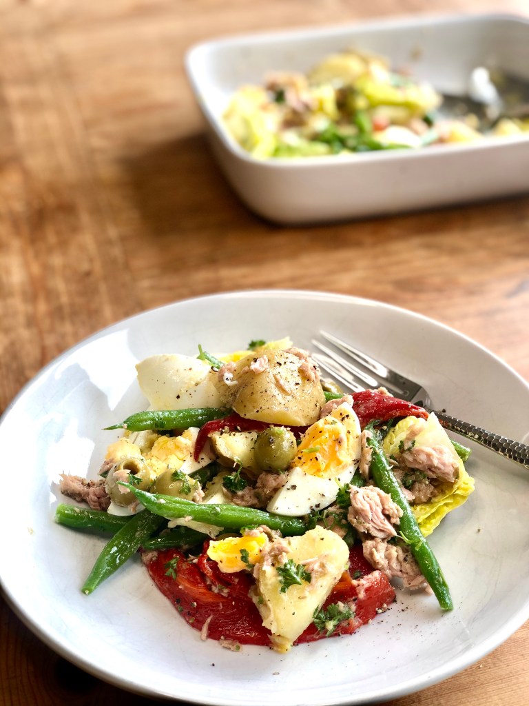 It’s not hard to see why this salad is a stone cold classic – it’s delicious, substantial, easy to make and appears to contain all known food groups. If you’re lacking in any particular ingredient just leave it out, or substitute with anything you have to hand – once you have tuna, eggs and green beans in there then anything goes really. Serves 2 ish.