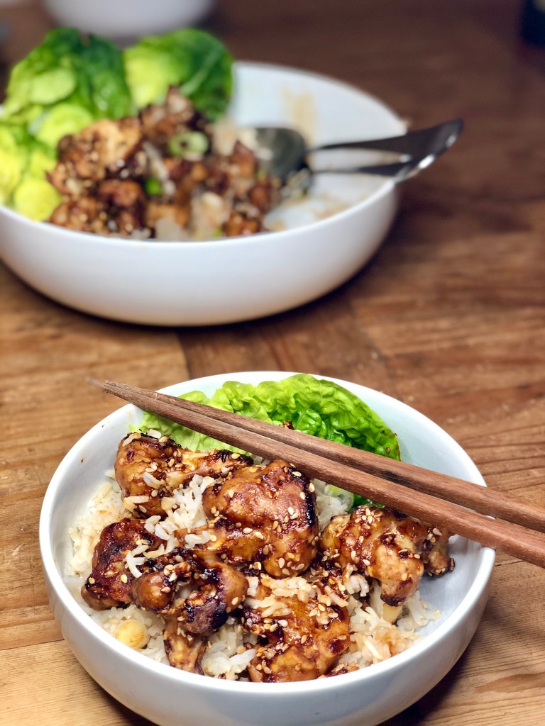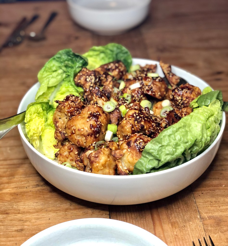 This recipe is amazing – who knew that baked cauliflower could taste so amazing? Not me. But it does. The teen thinks that this is just as good as the Korean sesame chicken I’ve made before (there’s a recipe for that too on this very blog), plus this is baked, not fried. Yes please more please. Recipe from Anna Jones’ wonderful and educational book ‘One pot, pan, planet’. Serves 4, and is a useful vegan recipe to have up your sleeves should you need it.
