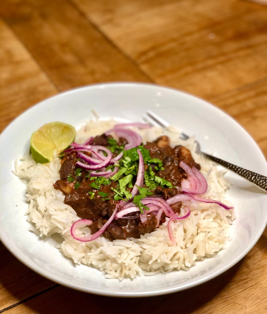 The Teen has declared that she not only prefers this to a meaty chilli, but she also thinks it may well be in her top 10 favourite meals. So far we’ve eaten it with rice, baked potatoes, baked sweet potatoes, in a wrap like a burrito, and with tortilla chips to create nachos with all the trimmings, so I think we can agree that it’s a hit. Don’t skip the pickled red onion slices, they’re amazing and super easy to make. Serves 6.