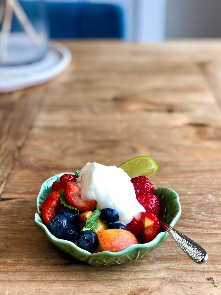 - When you’re ready to eat, add the remaining mint leaves to your prepared fruits, then drizzle on some of the syrup.