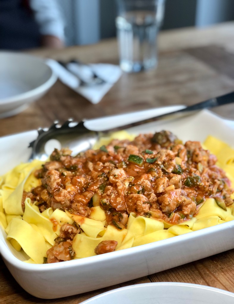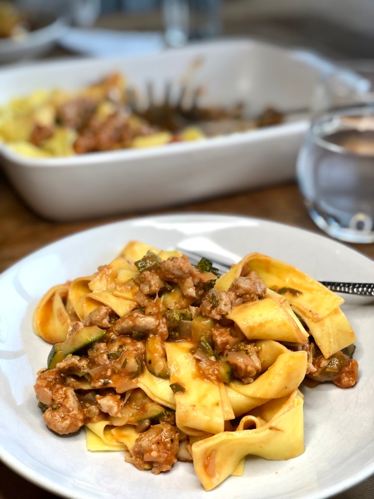 I’ve made variations of this dish sooooo many times, normally when digging around in the freezer looking for inspiration for dinner (dinspiration?) and discovering a packet of sausagemeat that wasn’t used at Christmas, or just a packet of sausages. It turns out that what I’ve been making is a sausage ragù, and rustling this up makes me feel like an Italian Mamma feeding her hungry family, which in our case means the three of us plus bonus leftovers as it will easily serve 4. Not too shabby.